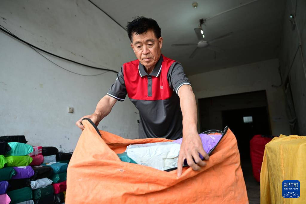 5月15日,徐以炳在整理快递件。今年60岁的徐以炳患有三级腿部残疾,2025年,他在“圆梦家园”助残驿站实现就业。