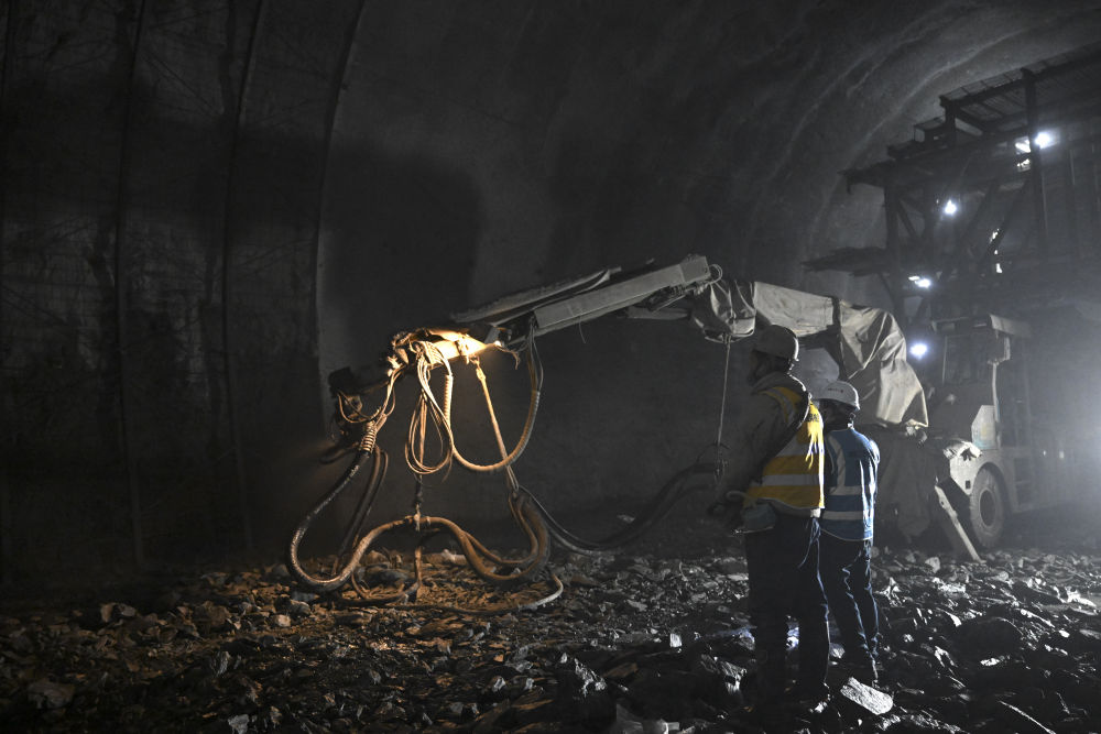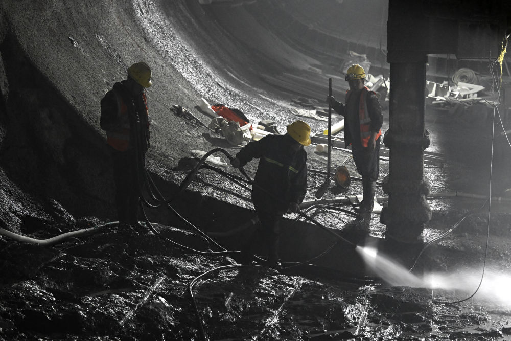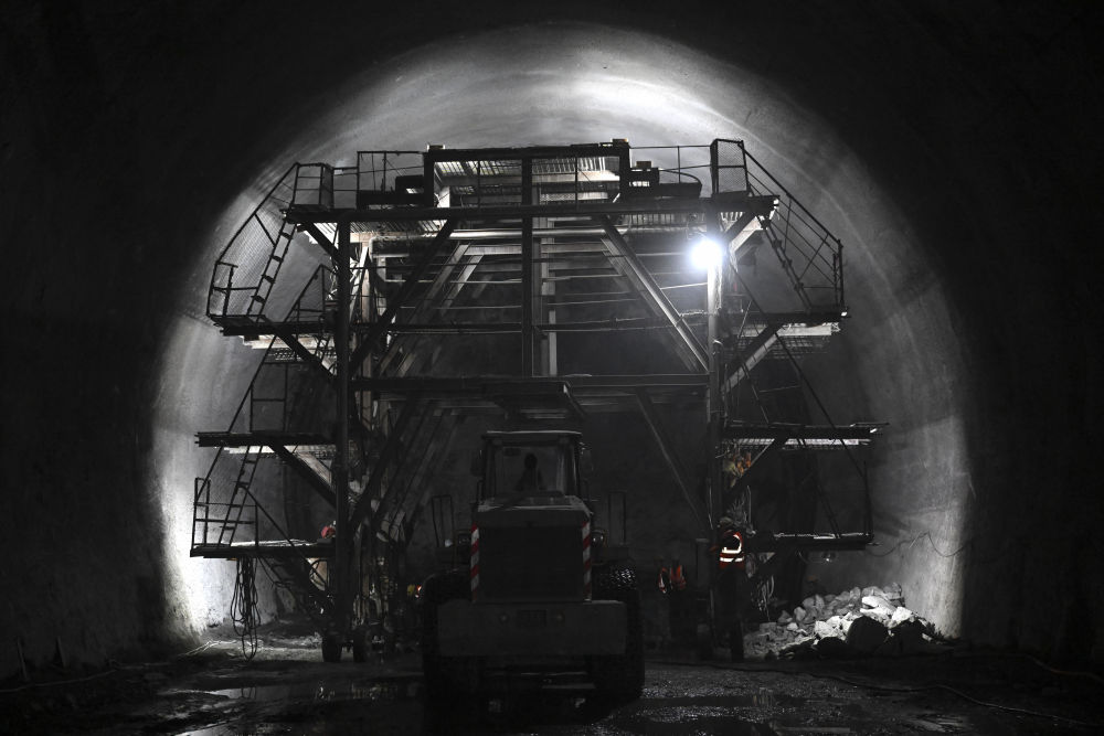 12月18日,工作人员在合武高铁长岭隧道内作业。pagebreak