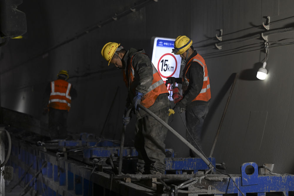 12月18日,工作人员在合武高铁长岭隧道内作业。