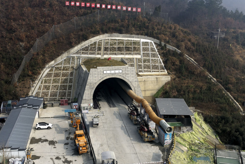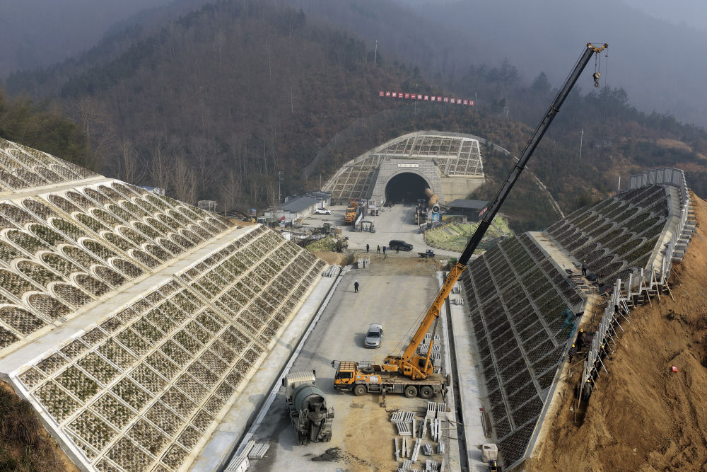 12月18日拍摄的合武高铁长岭隧道出口(无人机照片)。
