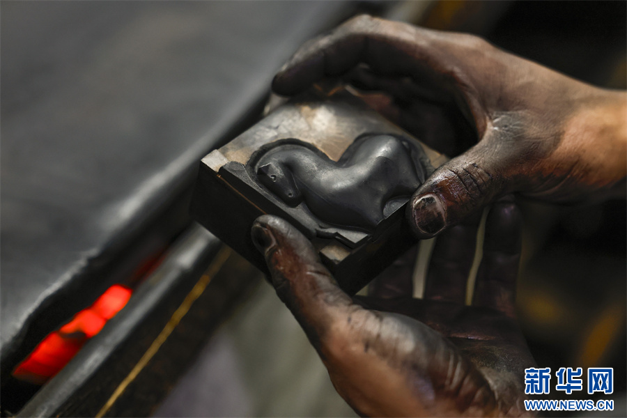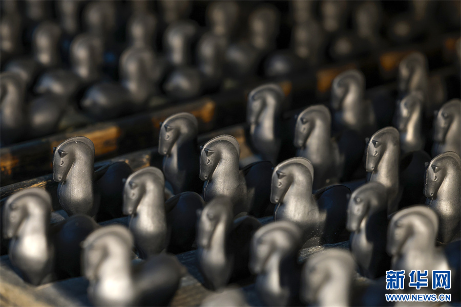 近日,在安徽省黄山市歙县老胡开文墨厂,制墨手艺人正在制作“立体唐马墨”。