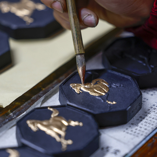 临近马年新春,在安徽省黄山市歙县老胡开文墨厂,制墨手艺人巧妙融入“马年元素”,匠心打造出系列主题徽墨,其中一款创新的“立体唐马墨”尤为亮眼。
