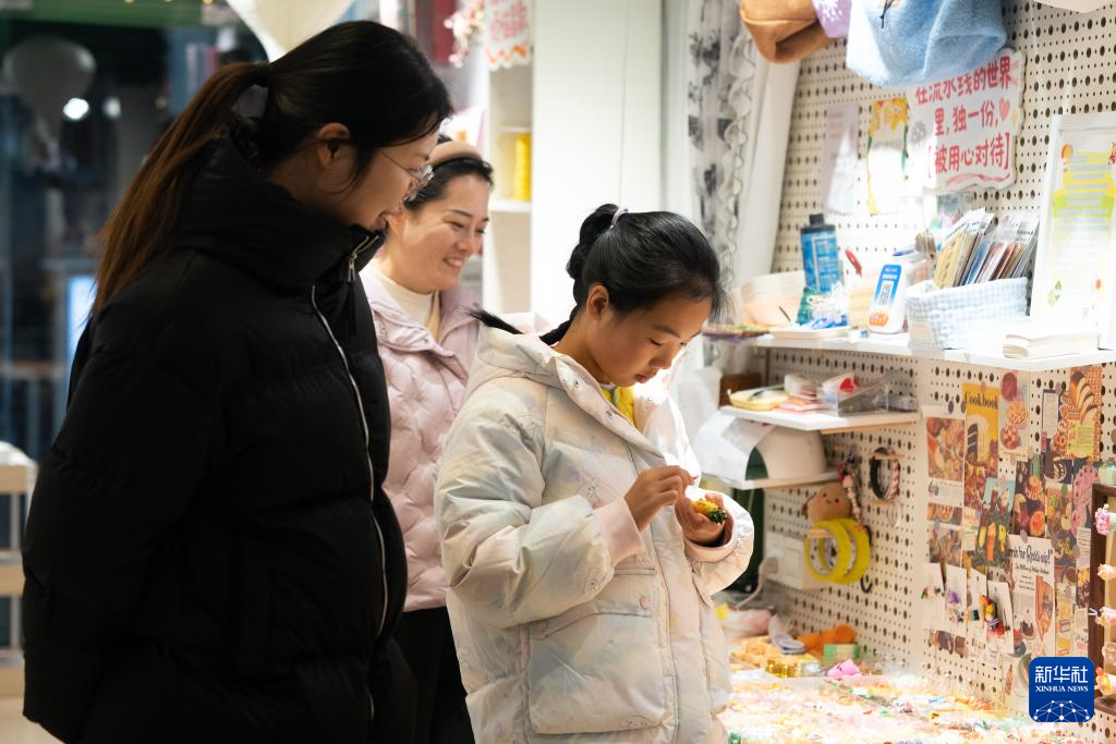 1月10日,游客在合肥市新粮仓商业合集一家文创店内选购商品。