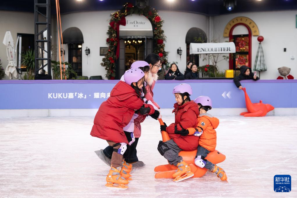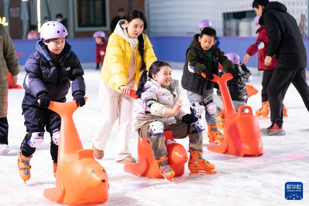 1月10日,游客在合肥市新粮仓商业合集滑冰。