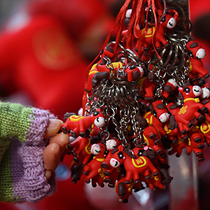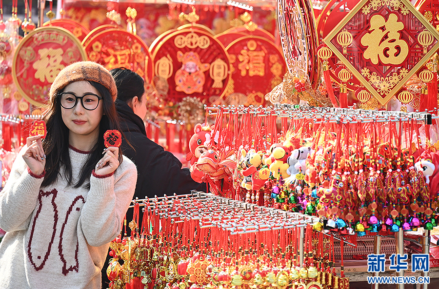 1月24日,市民在安徽省合肥市城隍庙市场内品尝冰糖葫芦。随着春节临近,合肥市城隍庙市场内挂满了大红灯笼、春联等节日饰品,年味浓厚,吸引不少市民前往选购。新华网发(杨晓原 摄)