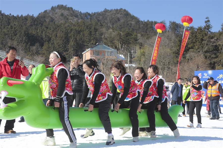 活动现场,来自全县14支代表队的选手们齐聚雪场,围绕雪地足球、雪地拔河、雪地龙舟、魔力雪圈、堆雪人、趣味滑雪体验等多个项目中展开角逐。欢声笑语回荡在雪场之上,选手们用运动热情点燃冬日激情,让冰雪“冷资源”变成群众共享的“热快乐”。 新华网发(熊凤霞 摄)