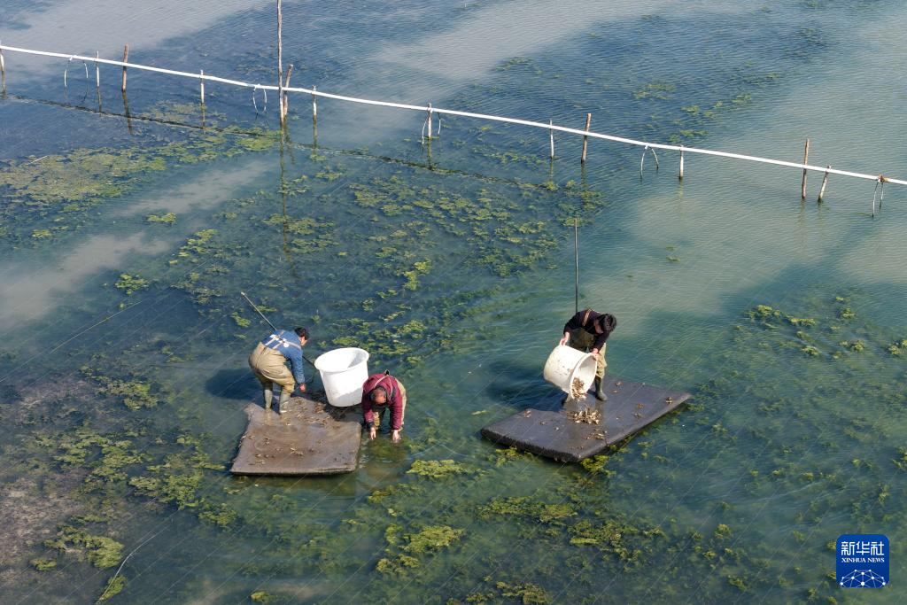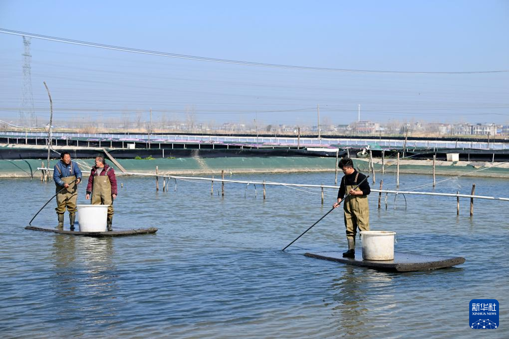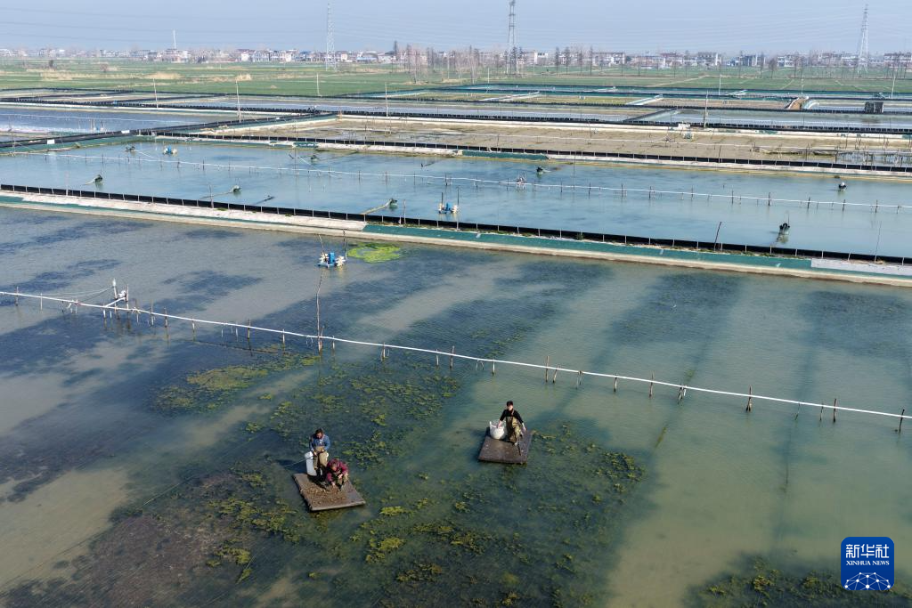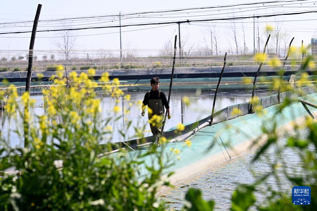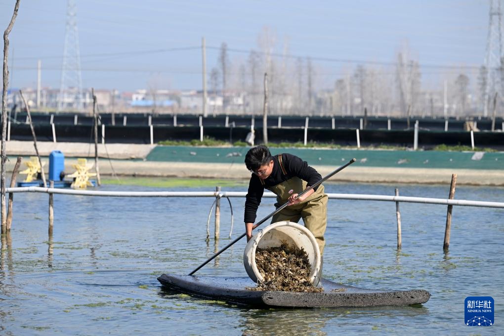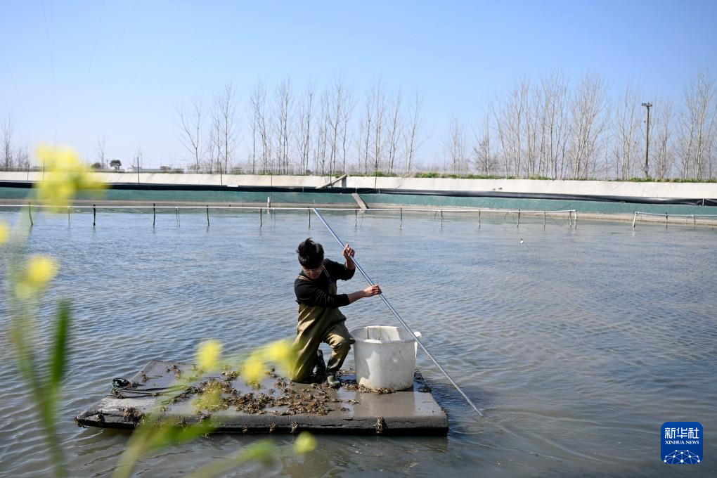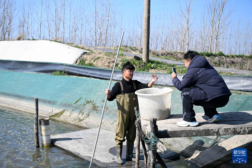 春已至,日渐暖,在安徽省蚌埠市五河县申集镇黄李村的螃蟹养殖基地内,“90后”新农人朱彩胜趁着晴好天气种植水草、投放蟹苗,开始新一年的“养蟹之旅”。