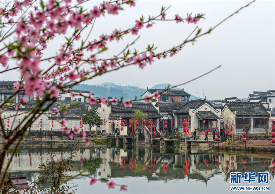当日,春日的安徽省黄山市徽州区呈坎村一派生机盎然,粉红的桃花、金黄的油菜花点缀在粉墙黛瓦间,新绿的柳枝轻拂永兴湖畔,与古桥、民居构成一幅色彩斑斓的江南春景图,令人沉醉。新华网发(施亚磊 摄)
